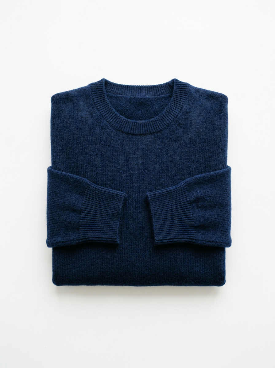 Weicher Kaschmir-Pullover in tiefem Navy. Rundhals, Regular Fit — das perfekte Layering-Piece für kühle Abende.